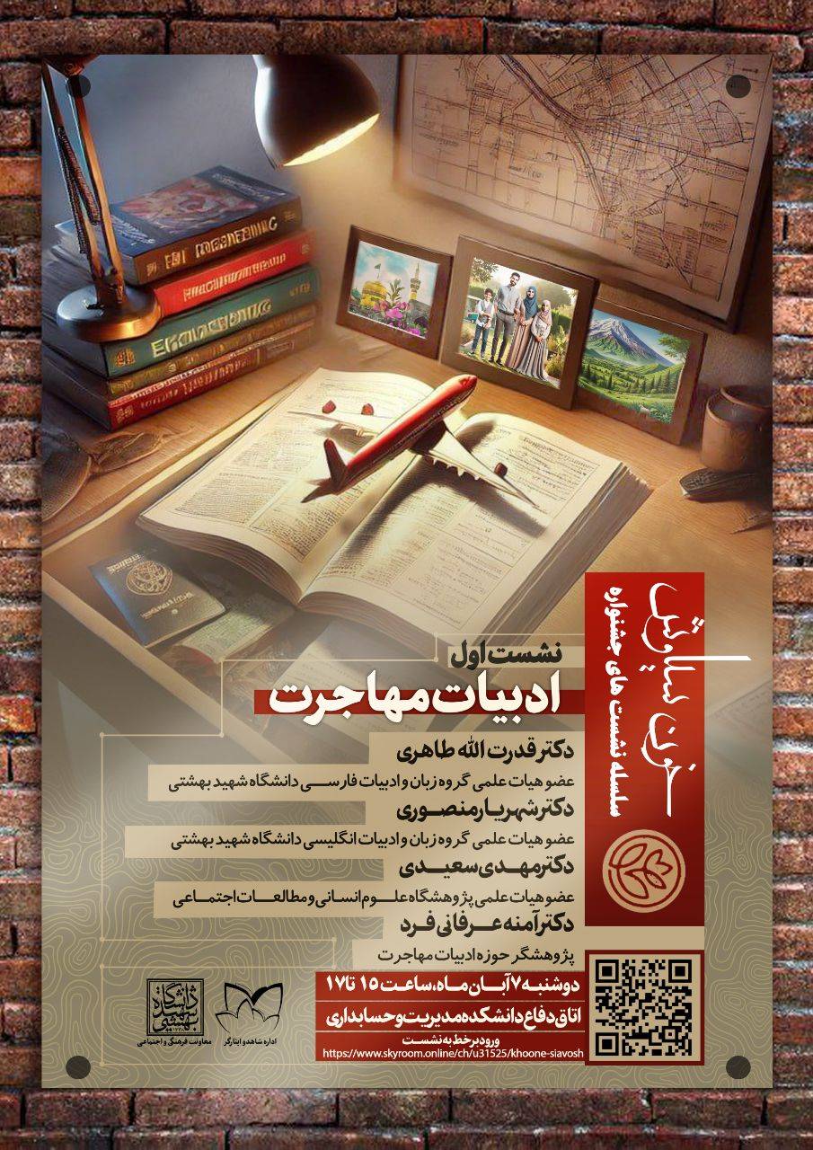 نخستین نشست از سلسله نشست‌های پنجمین جشنواره خون سیاوش با موضوع مهاجرت : «بازگشت»، در روز دوشنبه مورخ هفتم آبان با حضوراساتید و کارشناسان، به صورت حضوری و برخط برگزار شد. در این نشست که تمرکز آن حول محور ادبیات مهاجرت بود به بازتاب چالش‌های این پدیده و تجربۀ زیسته آن در آثار ادبی پرداخته شد.