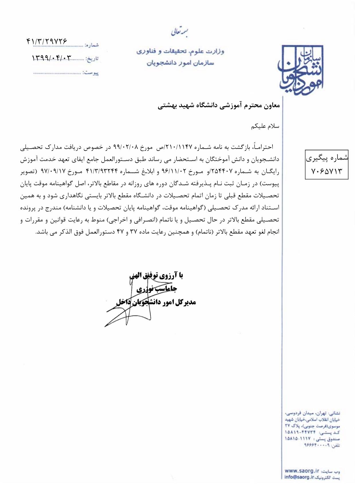 صدور گواهینامه موقت پایان تحصیلات: