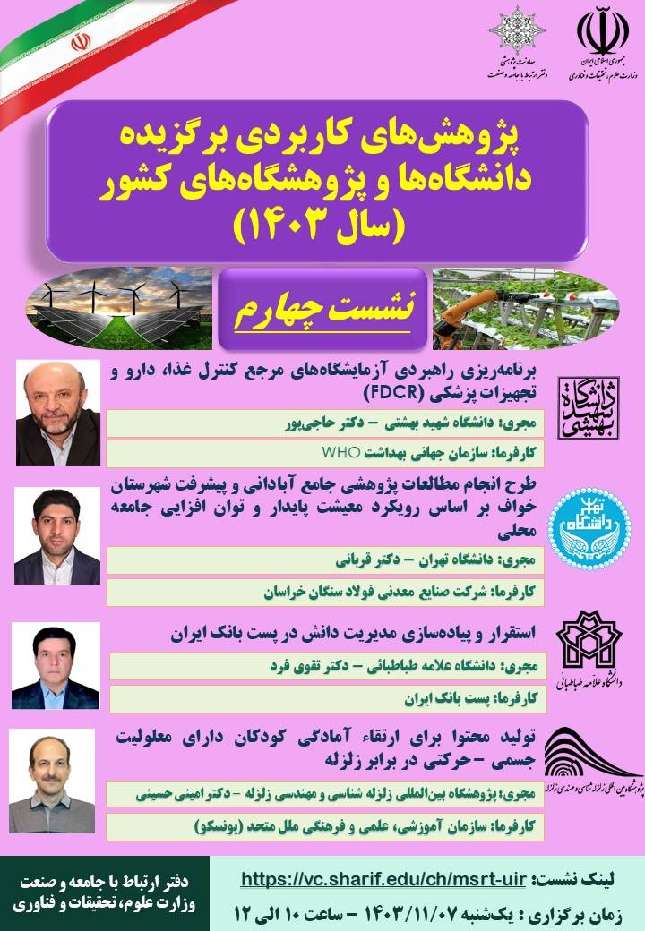 برگزاری پژوهش‌های کاربردی برگزیده دانشگاه‌ها و پژوهشگاه‌های کشور (سال 1403) - نشست چهارم
